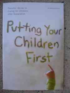 At the Citizens Advice Bureau I picked up the booklet with the interesting title “Putting your children first.” It is a “Parents’ guide to caring for children after separation.”