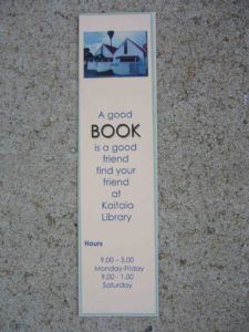 On the other side  I read “A good BOOK is a good friend. Find your friend at Kaitaia library.