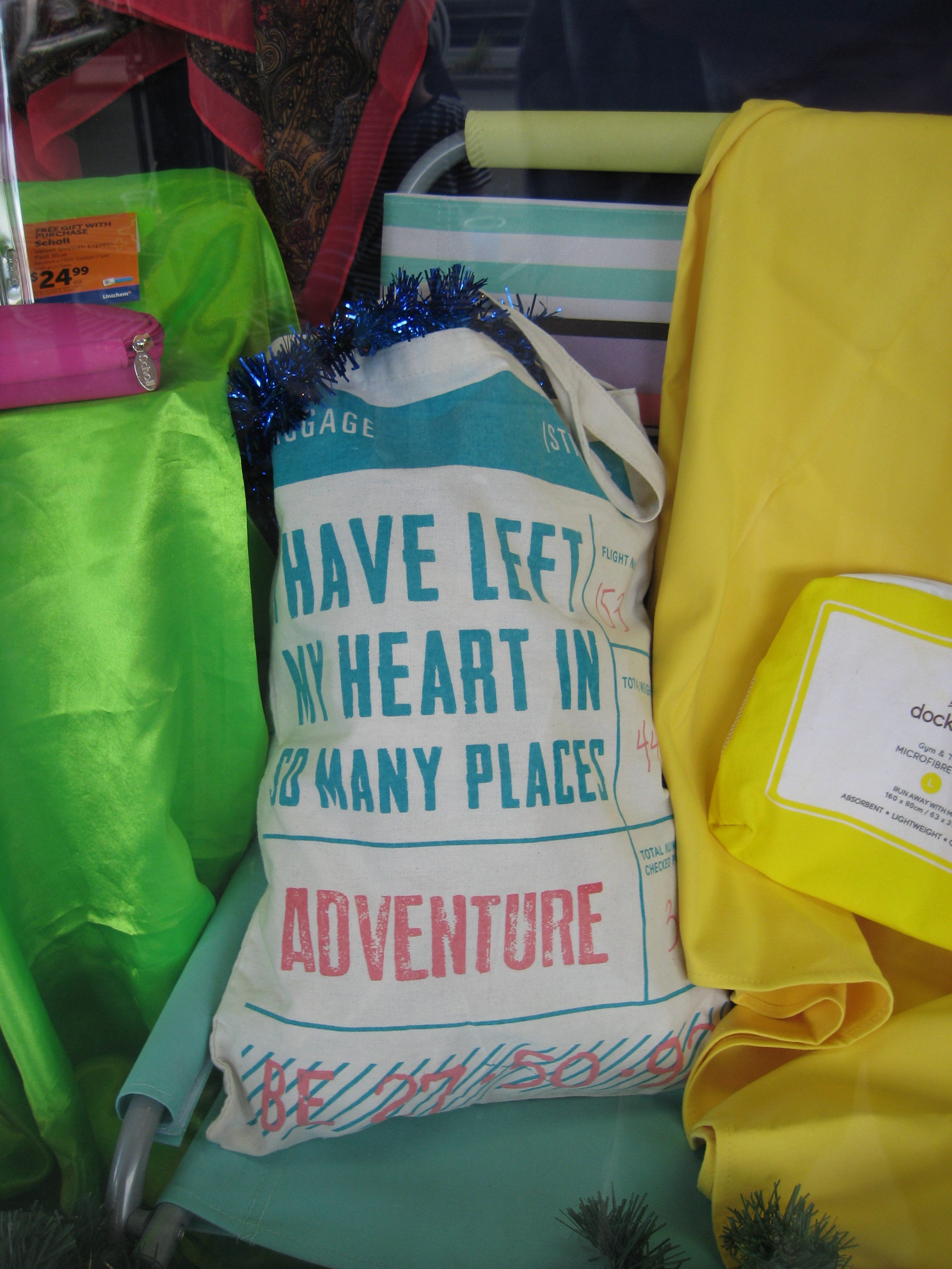 “ADVENTURE” and “I have lost my heart in so many places,” I am reading while looking into a shop window.